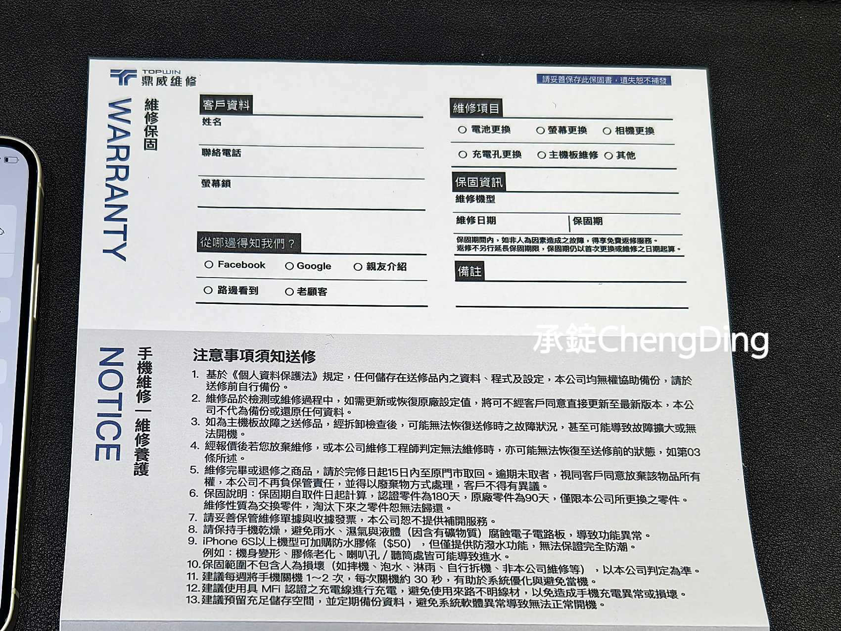 來到【鼎威維修】更換iPhone手機電池,體驗過程可以說是「從頭到尾都安心」。