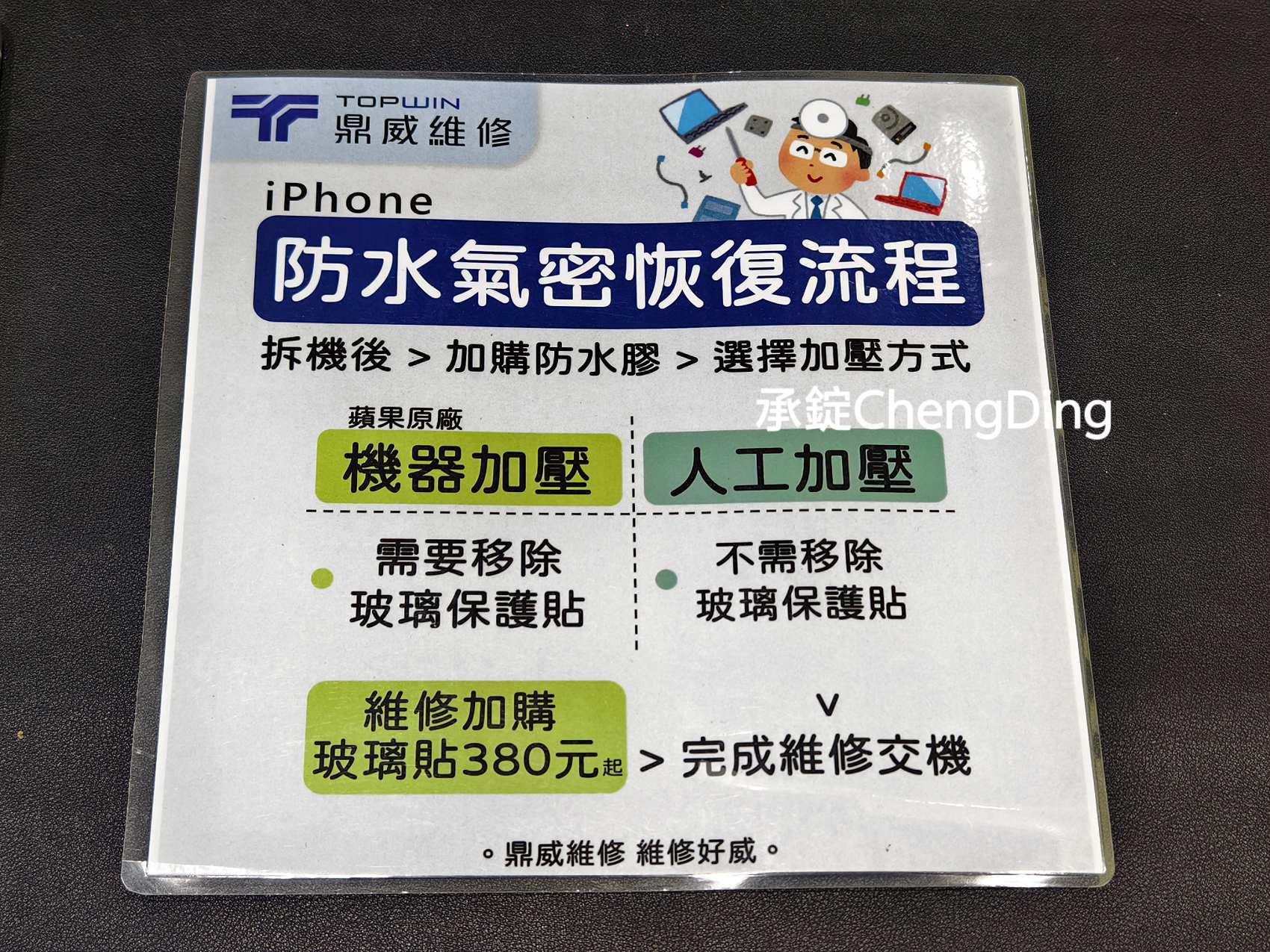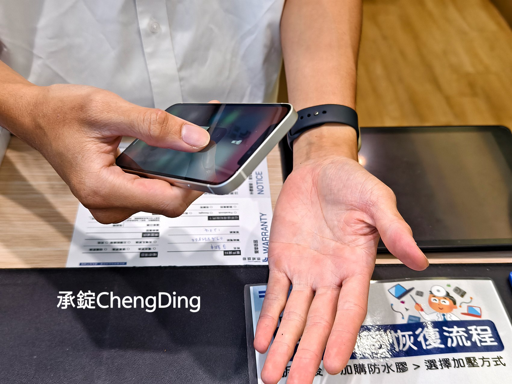 維修完成,鼎威現場提供「保護貼加購服務」,讓手機在恢復功能的同時,也能得到完整保護。
