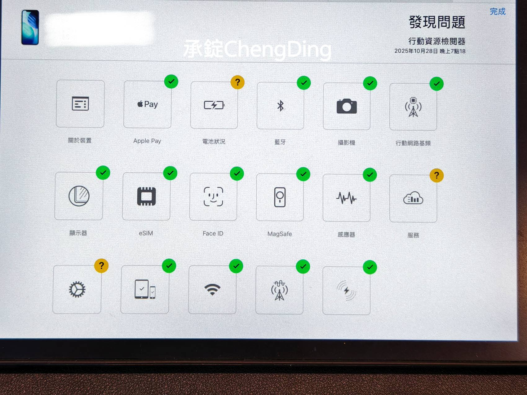 維修前,工程師會先進行基本功能檢測,像是喇叭、鏡頭、Face ID、觸控靈敏度、充電功能等,不僅能提前發現潛在問題,也能確保維修後一切正常。
