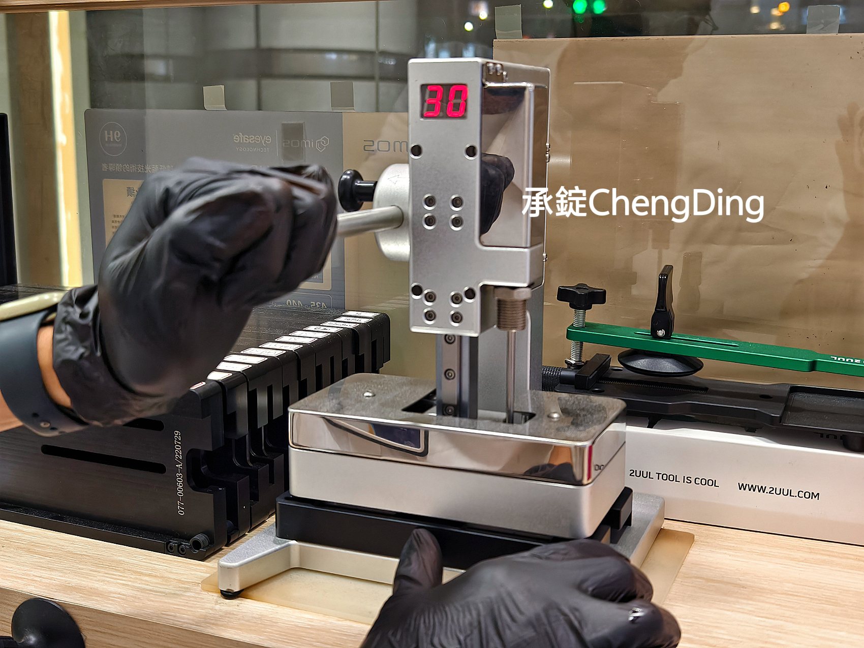 並將手機放入Apple原廠模具中加壓,讓防水膠與機身完全密合。