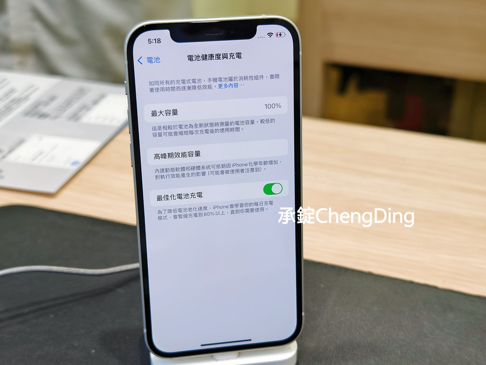我這顆電池健康度只剩71%,難怪續航力明顯變差,在家看影片才沒多久,就得要接上插頭幫手機充電。