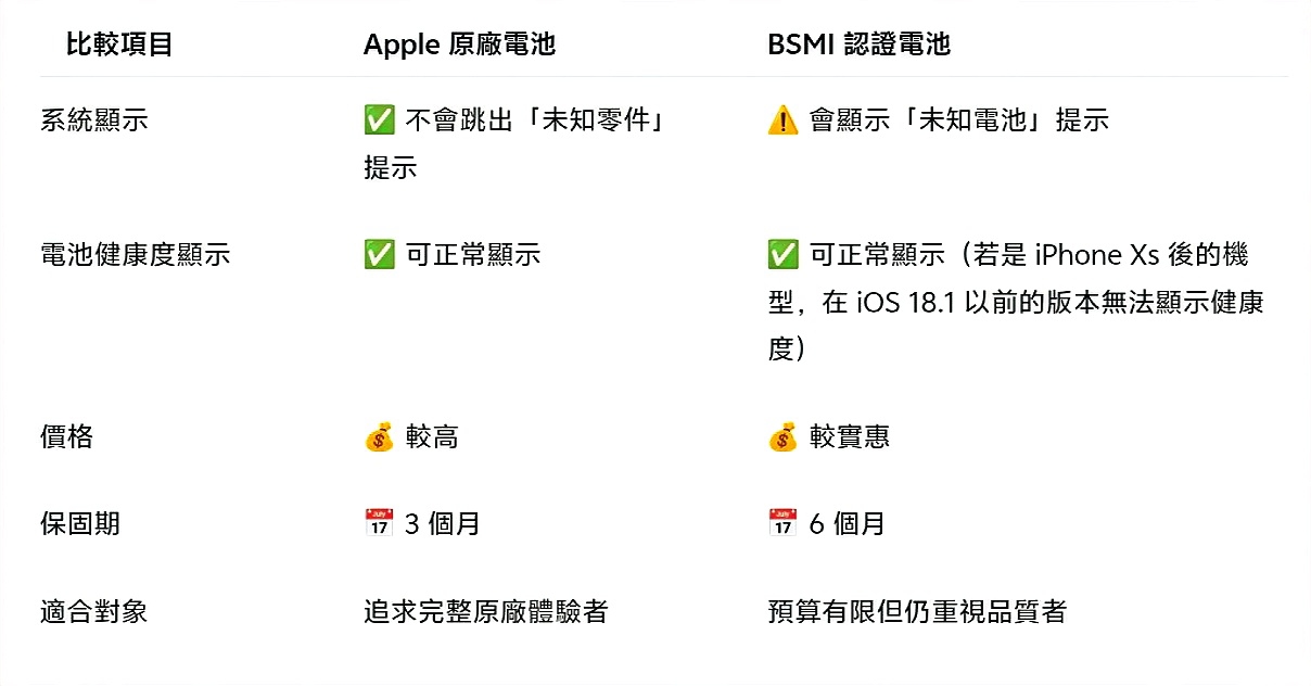 🔋 電池更換方案比較:原廠 vs 認證電池