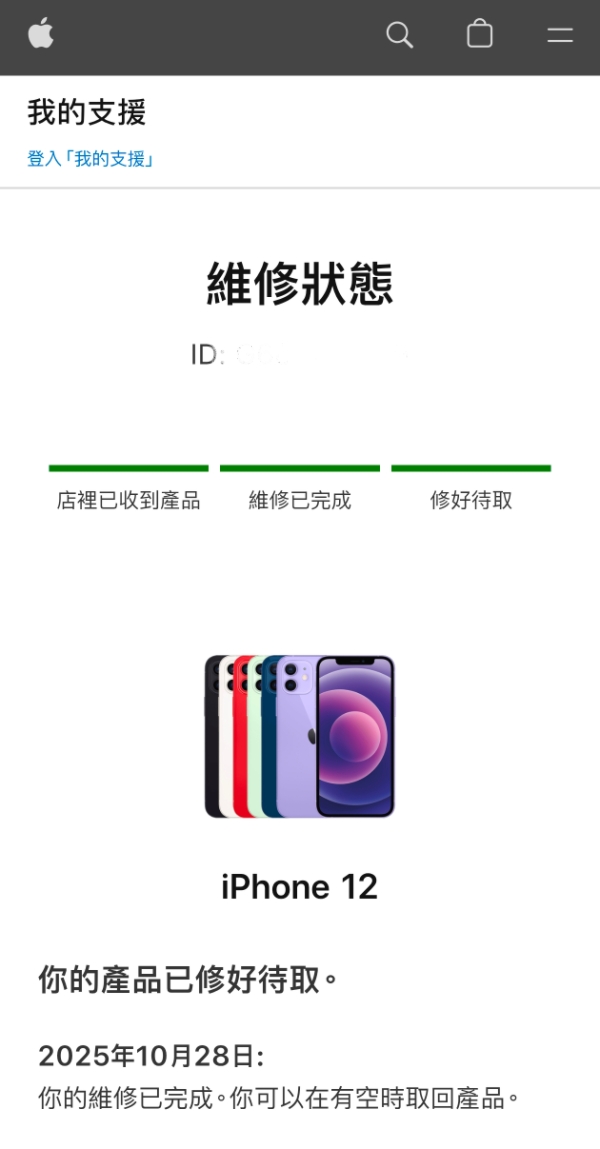 維修完成後,鼎威會提供此次維修ID,搭配手機序號在蘋果官網,即可查詢到Apple原廠維修紀錄,整個流程完全透明。